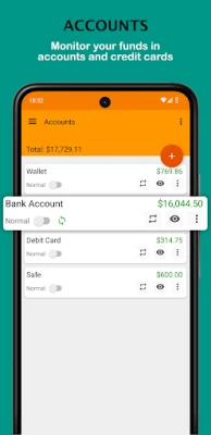 Track your debts and credits toward banks, friends or companies in a dedicated page.